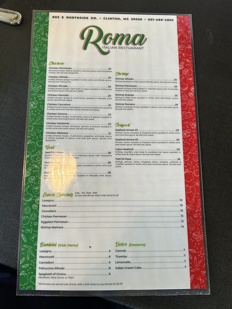 Welcome to Roma Italian Restaurant, a hidden gem in Clinton, MS that specializes in authentic Italian seafood cuisine. Nestled at 803 E Northside Dr, this restaurant is known for its warm ambiance and mouthwatering dishes that bring a touch of Italy to your plate.